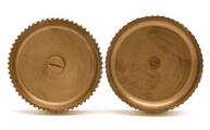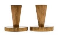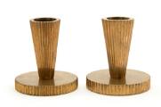 Two almost identical patinated bronze candlesticks with fluted sides and base. Manufactured by Tinos. Not stamped. H. approx. 8.5 cm. (2)