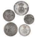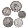 Christian VII, Slesvig-Holsten, speciedaler 1787, H 39A, 2/3 speciedaler 1787, H 40A, 1/3 speciedaler 1787, 1789, H 41A, C, 16 speciedaler 1787, H 42, in total 5 pcs