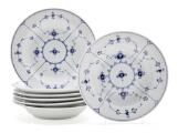 “Blue Fluted Fluted” seven deep plates of porcelain, decorated in underglaze blue. 6×165 and 1×167. Royal Copenhagen. Diam. 24 cm. (7)
