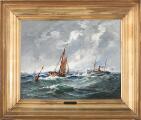 Ships in hard wind near Kronborg. Signed Holger Drachmann 1892. Oil on wood. 37.5×46 cm.