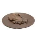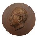 Portrait of an unknown man in profile. Indistinctly signed GH 1950. Stamped L. Rasmussen Copenhagen. Relief in patinated bronze. Diam. 42 cm.