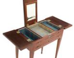 Fransk coiffeuse af rosentræ, top med opklappelige låger under hvilke spejl og rum. Louis XVI form. Ca. 1900. H. 72. L. 60. B. 39.