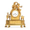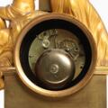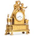 Fransk empire kaminur af forgyldt og lueforgyldt bronze. Rund emaljeurskive med romertal. Urhus prydet med amor og Psyke. 19. årh.s begyndelse. H. 48. B. 40 cm.