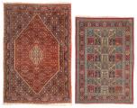 To persiske tæpper. Bidjar. Medaljondesign. 173×120. Samt Qum. Paradistes have design. 102×150. Begge 20. årh.s slutning.(2)