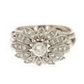 Diamantring af 8 kt. hvidguld prydet med brillantslebet diamant på ca. 0.40 ct. omkranset af talrige enkeltslebne diamanter. Str. 59.