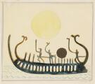 The sun ship. Sketch for the decoration of “Solgården”, Østerbro. Signed v.b.-p 41. Watercolour and gold paint on paper. Visible size 21×23 cm.
