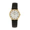 A gentleman's wristwatch of 18k gold. Model Portofino, ref. 3331–003. Mechanical movement with automatic winding and date. White dial with black hour markers and hands. Black strap with C-type buckle of gold plated metal. 2001.