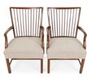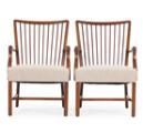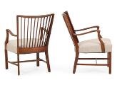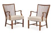 Et par lænestole med stel af mørkbejdset bøg og eg, betrukket i sæder med gråt uld. 1930'erne. (2)