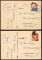 1942. “Wert Keinen Pfenning”. 2 propaganda fieldpost cards from Germany during World War II sent to Denmark. Both with heavy folds and small tears. [ ⊙ ]