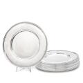 Et sæt på 12 dækketallerkener af sterlingsølv, profileret fane prydet med perlestaf. 20. årh. Vægt ca. 6530 g. Diam. 29. (12)