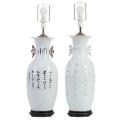 Et par store kinesiske vaser, af porcelæn, balusterformede, dekorerede i emaljefarver med bjerglandskab og kalligrafi. Republik. Monterede til lamper. H. ekskl. montering 58 cm. (2)