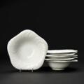 “Hvid Konkylie”. Seks dybe tallerkner af porcelæn, dekoreret med klar glasur. Tryksign. monogram, hhv. 14173 og 604. Royal Copenhagen. H. maks. 5,5. Diam. 20,5. (6)