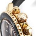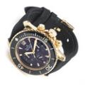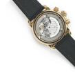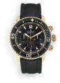Herrearmbåndsur af 18 kt. guld. Model Fifty Fathoms, ref. 5085F-3630–52A. Mekanisk kronografværk med automatisk optræk og datovisning, kaliber F185. Sort skive med guldindeks og visere. Kronograf med flyback-funktion. Sort Blanpain-rem af stof og gummi med Blancpain C-spænde af 18 kt. guld. Urets diameter 45 mm. 2010'erne.