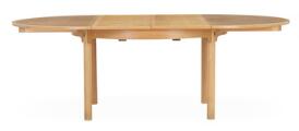 “Øresund”. Cirkulært spisebord af eg med udtræk, inkl. to foldbare tillægsplader. Udført og mærket hos Karl Andersson & Söner. H. 72. Diam./L. 130/216.