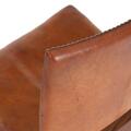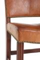 Normal patina due to age and use, including scratches and marks. Re-upholstered. Leather with stains and blotches.