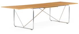 Dining table with steel frame and maple top, two foldable extra leaves. Manufactured by Fritz Hansen, 1986. H. 71. L. 180/290. W. 86 cm.