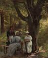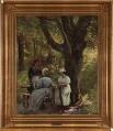 Forest view with a soldier addressing two women. Signed and dated C. Th. 92. Oil on canvas. 55.5×45.5 cm.