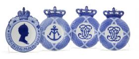 Four memorial porcelain plaques, comprising 2 x Christian IX, princess Dagmar 1847–1917 and princess Marie. Royal Copenhagen. H. 14 cm. (4)