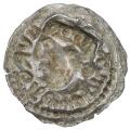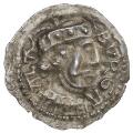 Svend Grathe, 1146–1154, Aalborg, bracteate, 0.16 g, Hbg 12a, ex. Hbg. auction 1420, ex. Hede II, 67, insignificant flan crack – extremely rare type with fully legible city name (ALABVRGA) and a distinguished provenance.