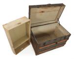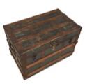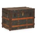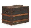 A 19–20th century wooden trunk covered with canvas and with metal brackets. H. 60.5. W. 87. D. 53 cm.