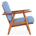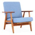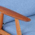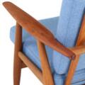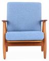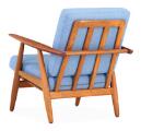“Cigaren”. Lænestol med stel af eg og teak, løse hynder betrukket med blå uld. Model GE 240. Tegnet 1955. Udført hos Getama, 1950'erne.
