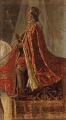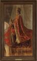 “Christian IV's Kroningstog 1596”. Relateret til et gobelin for riddersalen på Frederiksborg slot. Rekonstrueret efter Karel van Manders komposition på grundlag af en blyantstegning af Heinrich Hansen fra 1859. Sign. RxChr. 1914. Olie på lærred monteret på træ. 89×43 cm.