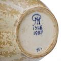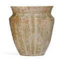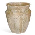 A stoneware vase decorated with green glaze with light elements. Signed monogram, ISLE, 1924. Unique. H. 14.8 cm. Diam. 13.3 cm.