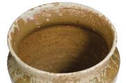 Mouth with two hairline cracks and larger repairs with minor crack formations.