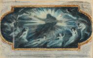 “Nordlyset”. Northern lights. Draft study for a plafond for The Royal Danish Academy of Sciences and Letters. Unsigned. Charcoal and crayon on paper. Sheet size 26×41 cm.