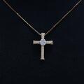 Kæde af 18 kt. guld med vedhæng af 14 kt. guld i form af kors prydet med talrige brillantslebne diamanter. L. kæde ca. 46 cm. Ca. 2011.