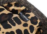 A woolmix heringbone coat with leopard print lining. L. center back 95 cm. Italian size 40.