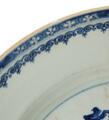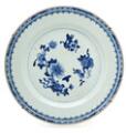 Ostindisk fad af porcelæn, dekoreret i blåt med blomster. Qing dynasti 18. årh. Diam. 32 cm.
