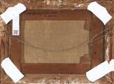 Minimale afskalninger. Minimal perforering. Områder med let forrensning. Lærred bør strammes op. Enkelte pletter. Behov for let overfladerensning.
