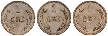 1 øre 1879 CS, 1883 CS, 1897 VBP, H 19A, 19B. (3)