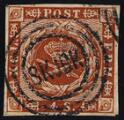 1862. 4 sk. 5. tryk. Pænt mærke annulleret med flot retvendt Esrom-type stempel “SKJBK”. Udt. CAM. [ 7x ] [ ⊙ ]