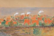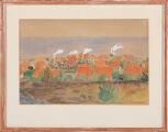 Udsigt over Gudhjem. Usigneret. Akvarel og blyant på papir. Lysmål 30×46 cm.