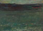 “Grønt landskab”. Signed with monogram. Oil on compoboard. 33.5×44 cm.