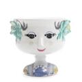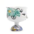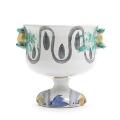 An earthenware centerpiece decorated with polychrome glaze. Signed with monogram, dated 79, V.13. H. 11. Diam. 10.5 cm.
