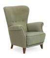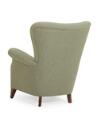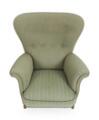 Overpolstret lænestol med ben af bejdset bøg, betrukket med grønligt uld. 1940'erne.