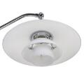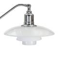 “Vandpumpen”. PH 3/2 Gulvlampe med stel af højglansforkromet stål og skærme af hvidt opaliseret trelags glas. Udført hos Louis Poulsen. H. 126. Diam 29.