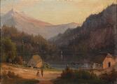 Udsigt over en alpesø. Usigneret. Olie på lærred. 13,5×18.