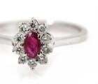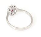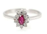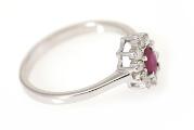 Rubinring af 14 kt. hvidguld prydet med oval facetslebet rubin på ca. 0.35 ct. omkranset af talrige brillantslebne diamanter på i alt ca. 0.22 ct. B. ca. 9 mm. Str. ca. 52.