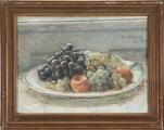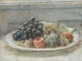 “Vindruer og Æbler paa et Fad”. Sign. Viggo Johansen XI 1925. Olie på lærred. 35×46 cm.