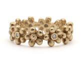 “Hyldeblomst” diamantring af 14 kt. guld prydet med talrige diamanter. Vægt ca. 7 g. B. 6 mm. Str. 61.