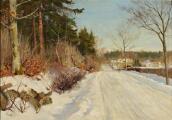 Vinterlandskab. Sign. Harald Pryn. Olie på lærred. 50×71.