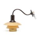 “PH-2/2”. Patinated browned brass wall lamp with yellow-painted frosted glass shades and later U-2,5 amber coloured glass bottom shade and bottom bowl. Shade fitting marked “Patented” and “P.H.-2”. Manufactured 1930s by Louis Poulsen. H. 23 cm. L. incl. shades cm. 34. Diam. 20 cm.