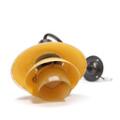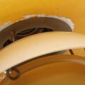 Patina due to age and use, including scratches and marks. Shades with minor blotches and chips in yellow paint. Bottom shade and bottom bowl changed. We do not guarantee for the functionality.
