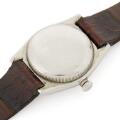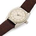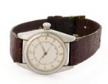 “Bubbleback” af stål, ref. 2940. Mekanisk værk med automatisk optræk. 1946. Alligatorrem med spænde af forgyldt metal. Ø 32,5 mm.
