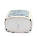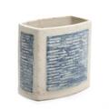 A Royal Copenhagen stoneware vase modelled with pattern in relief, decoarted with blue and grey glaze. Signed E.St.N. 22356. H. 20.5. L. 21.5. W. 13 cm.