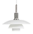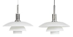 “PH 4,5/4”. Et par pendler med fatningshus af forkromet metal. Skærme af flerlags opalglas og bundskåle af matglas. Udført hos Louis Poulsen. Diam. 45. (2)